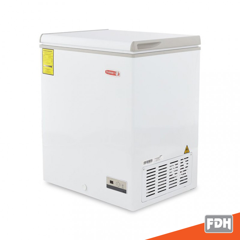 Congelador horizontal TORREY con tapa tipo cofre de 5.2 pies3 de capacidad, con sistema dual de refrigeración o congelación e interior de acero embozado pintado.