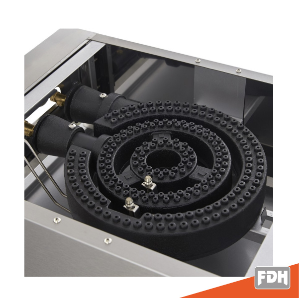 - Fogón a gas construido en acero inoxidable tipo 430 para dar un mayor tiempo de vida.