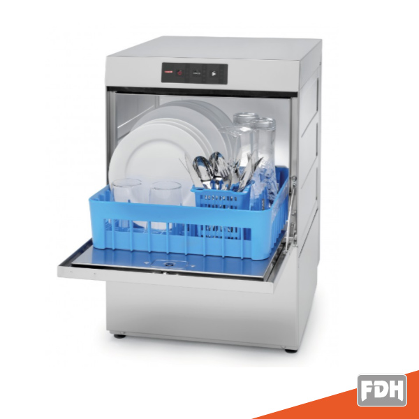 Lavavajillas construida en acero inoxidable que facilita y mejora la limpieza y sanitización de la misma. Capacidad para lavar hasta 30 cestos por hora.