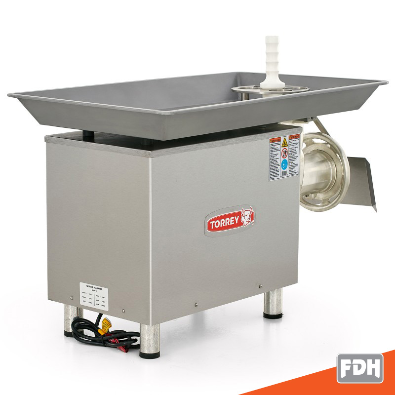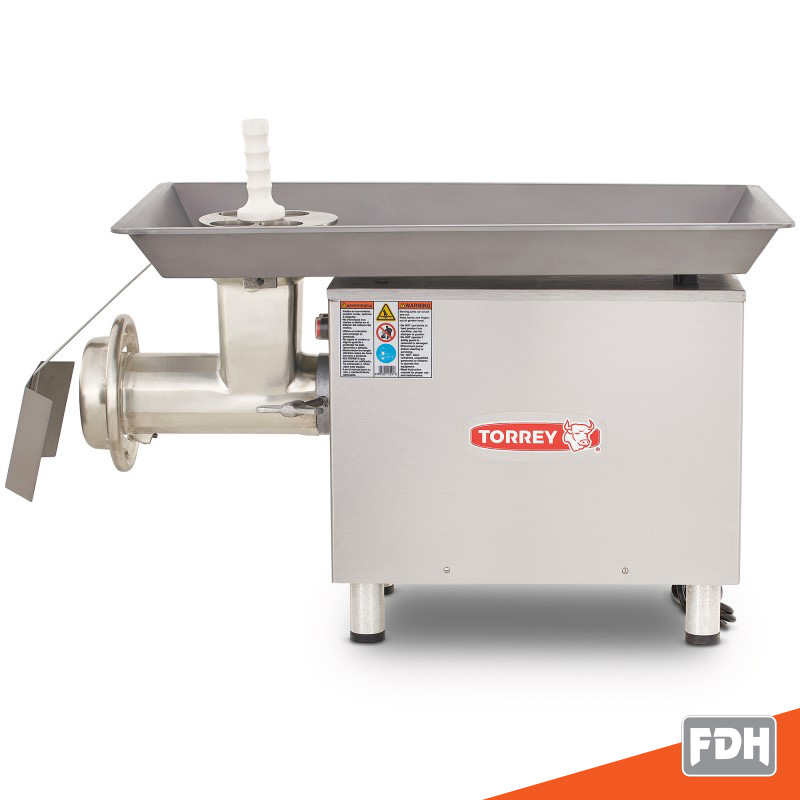 Molino para carne TORREY de 3 HP con capacidad de molienda de 25 Kg por minuto, con cedazos y navajas intercambiables para diferentes aplicaciones