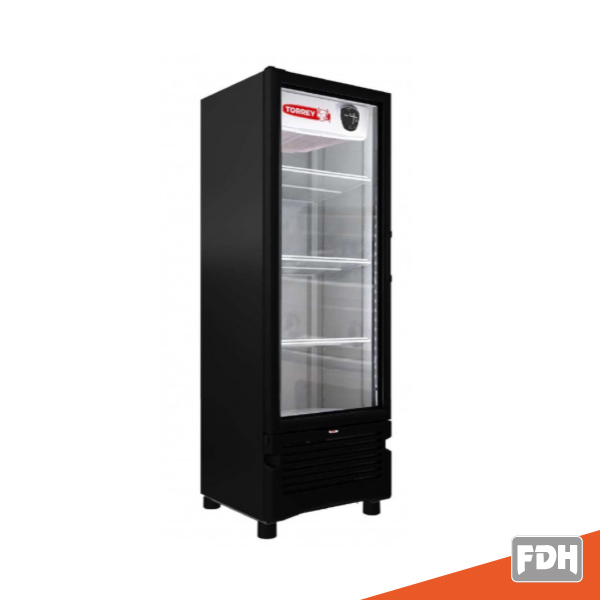 Refrigerador vertical de exhibición de 12 pies, con sistema de enfriamiento por aire forzado, 3 parrillas ajustables e iluminación LED.