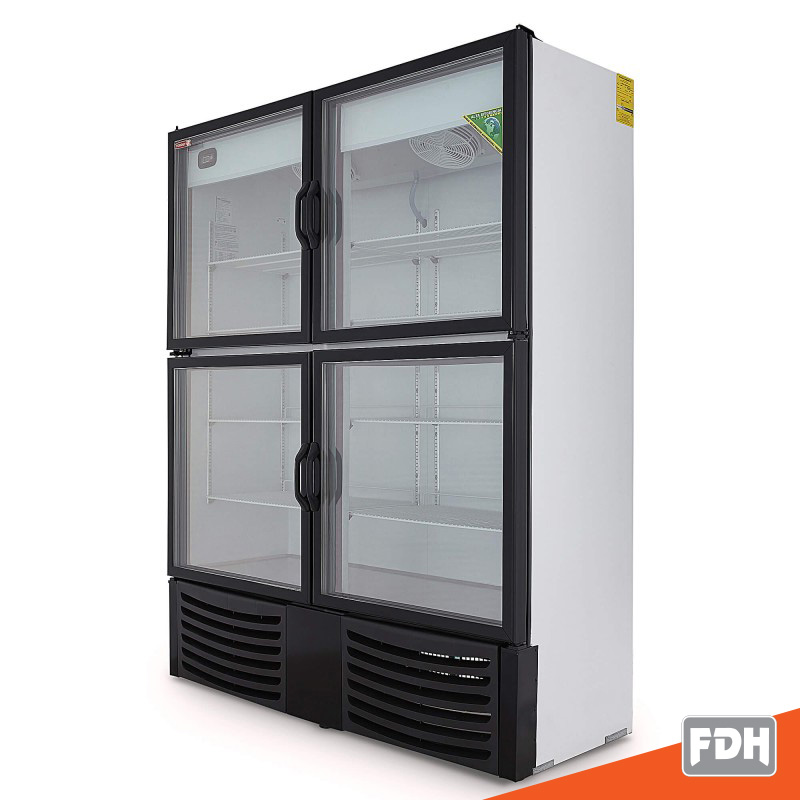 Refrigerador TORREY con cuatro puertas de cristal con capacidad de 42 pies3, fabricado en lámina con acabado blanco e iluminación interior LED de alta intensidad.
