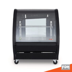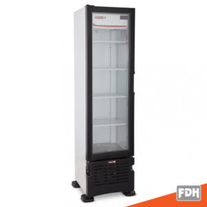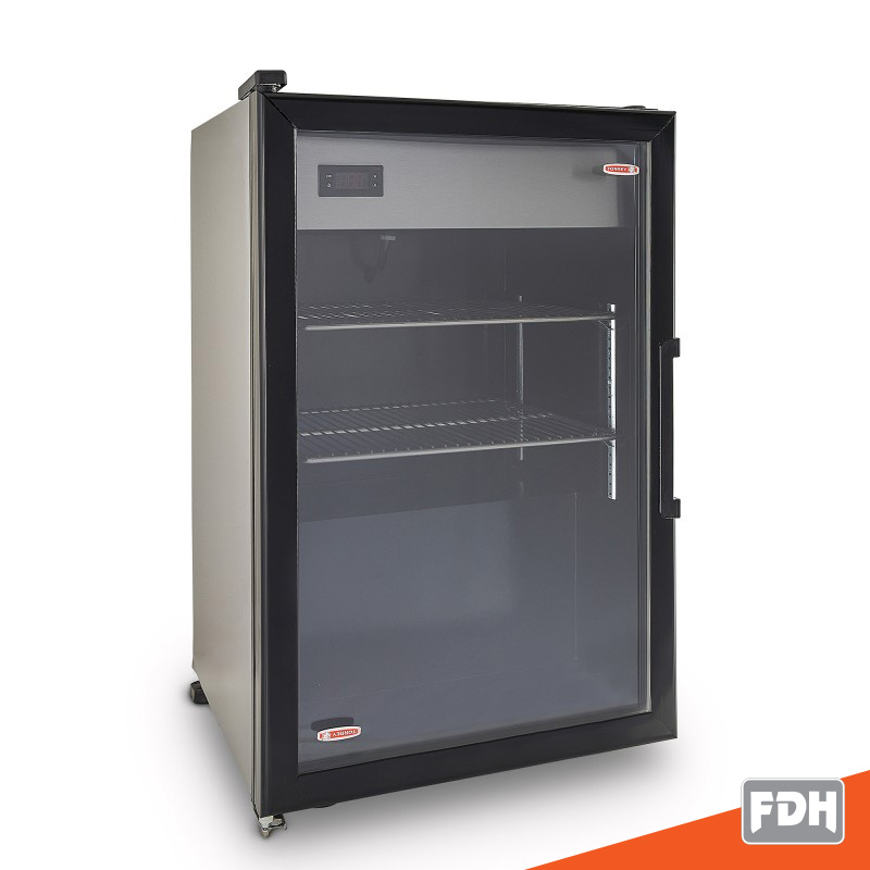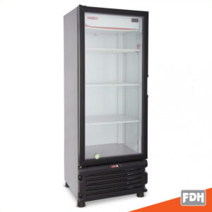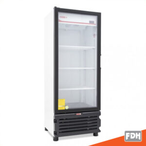 Refrigerador vertical exhibidor de 1 puerta con sistema de enfriamiento por aire forzado con acabado exterior en acero inoxidable.