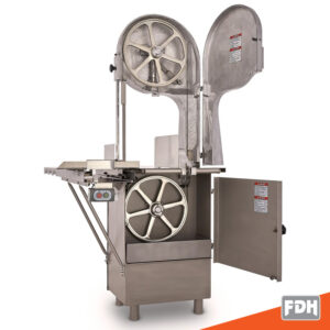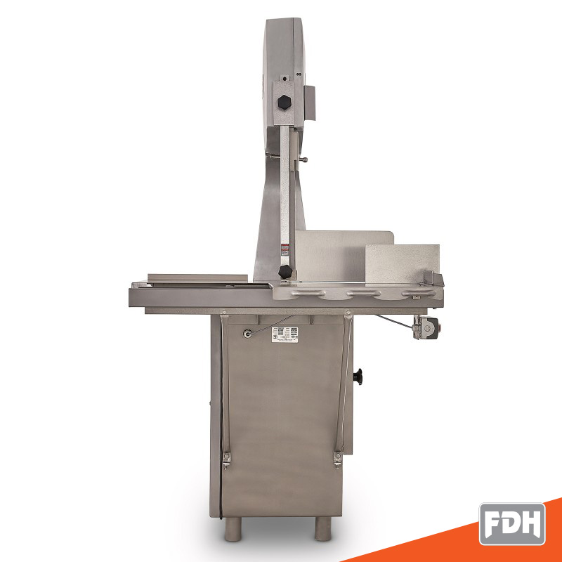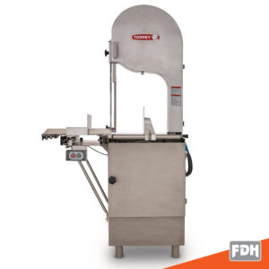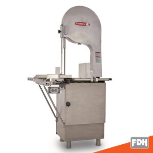 Sierra carnicera TORREY de acero inoxidable de alta velocidad de motor 5HP trifásico, banda de 355 cm con mesa desmontable y múltiples dispositivos de seguridad para protección