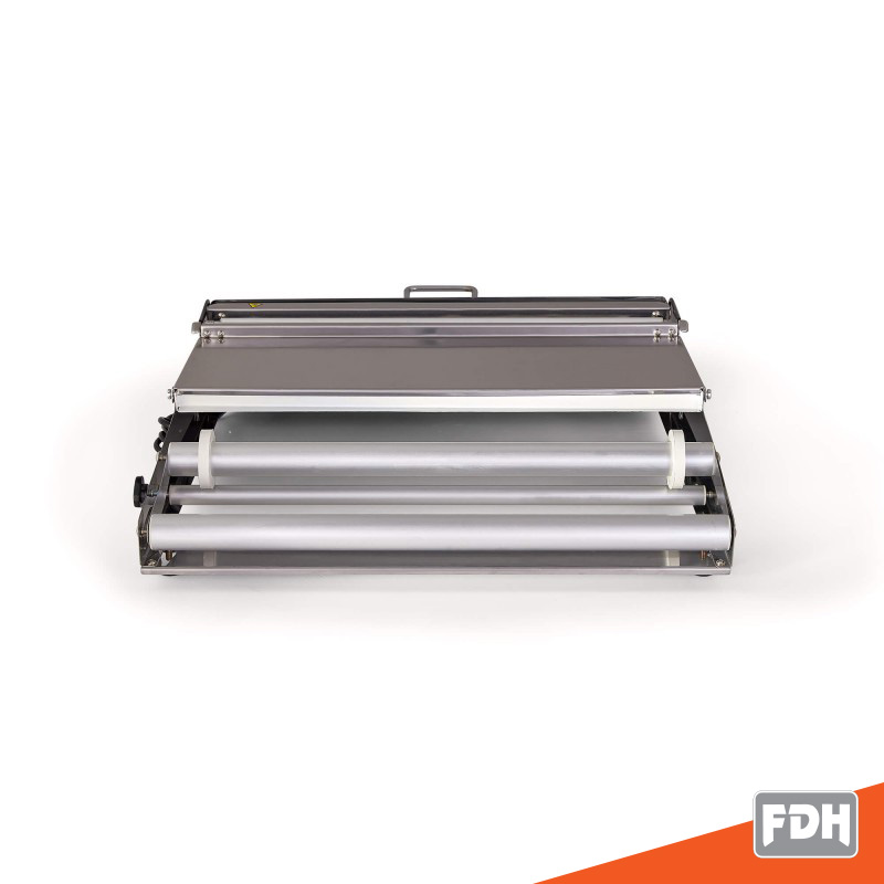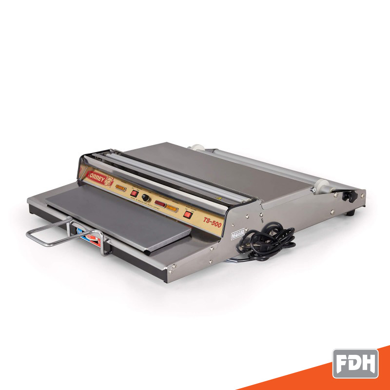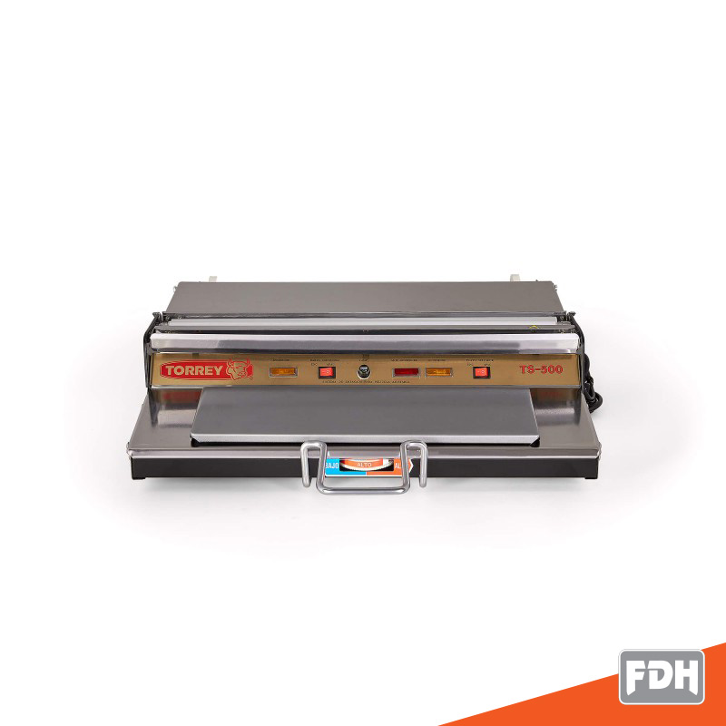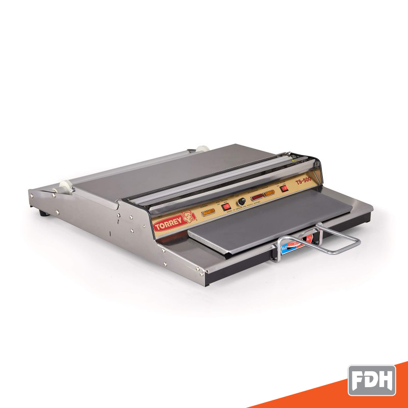 Termoselladora de temperatura ajustable TORREY para mostrador y porta rollos adaptable a diferentes medidas de película selladora.