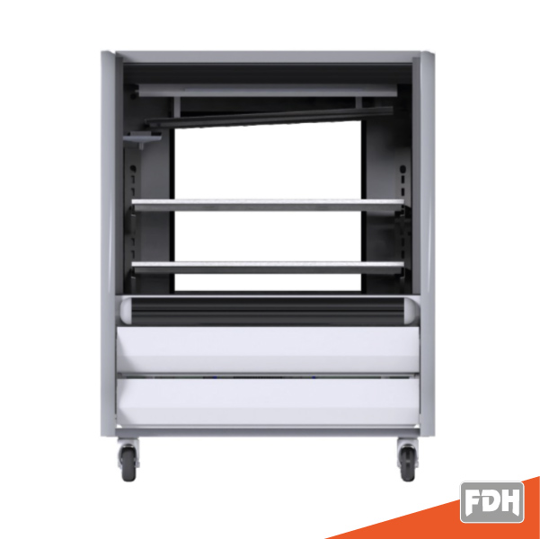 - Cuenta con 2 charolas en acero inoxidable y ofrece 3 niveles de exhibición