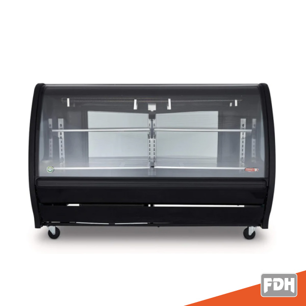 Vitrina Exhibidora color negro de 1.91 m, control digital de temperatura, puertas posteriores de cristal, techo de acero inoxidable ideal para utilizarla como mostrador dentro de tu establecimiento.