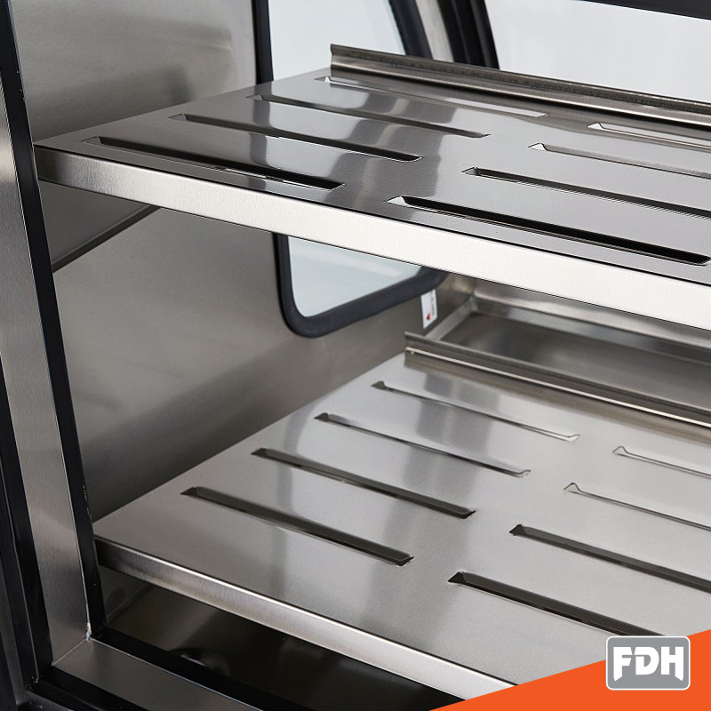 - 2 charolas de acero inoxidable con inclinación variable