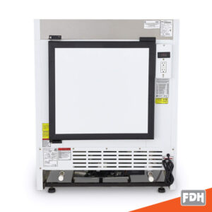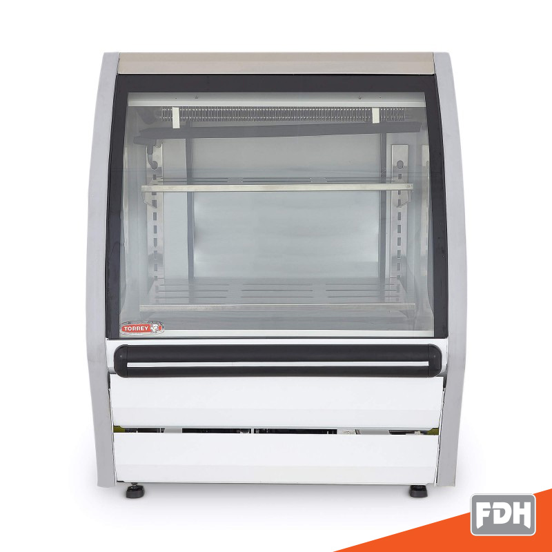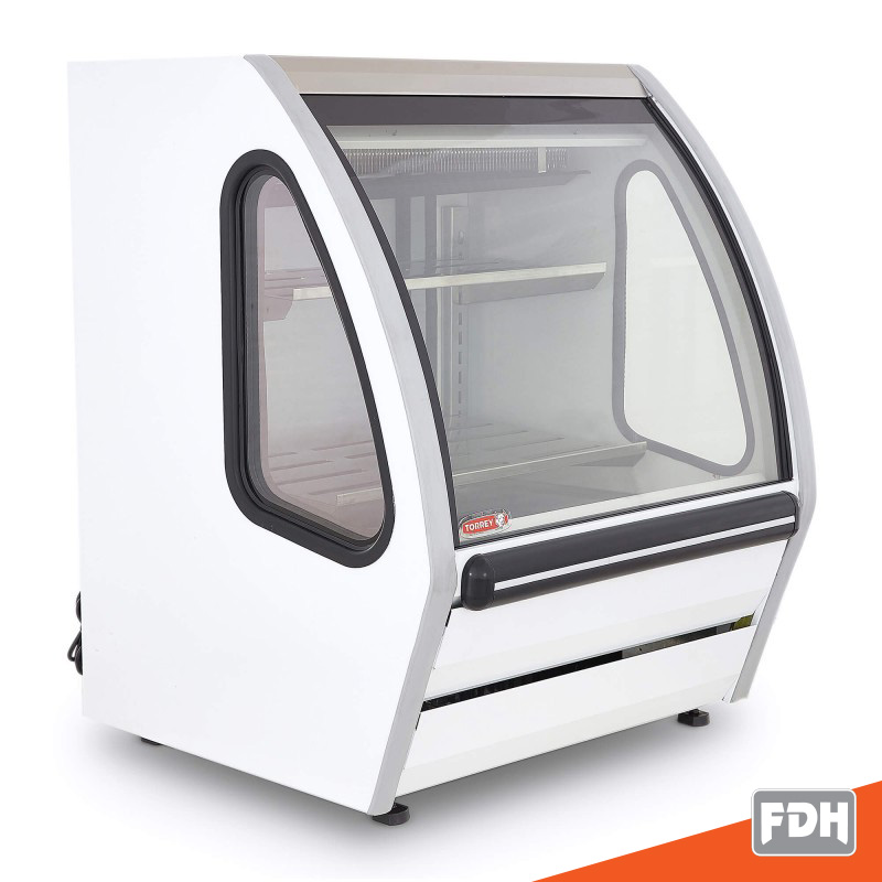 Vitrina TORREY de exhibición color blanco de 92 cm con 3 niveles de exhibición, control digital de temperatura y puerta posterior sólida de fácil acceso ideal para establecimientos pequeños.