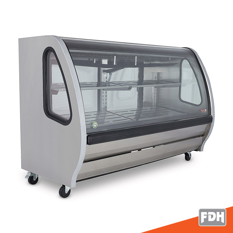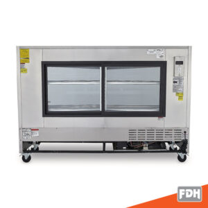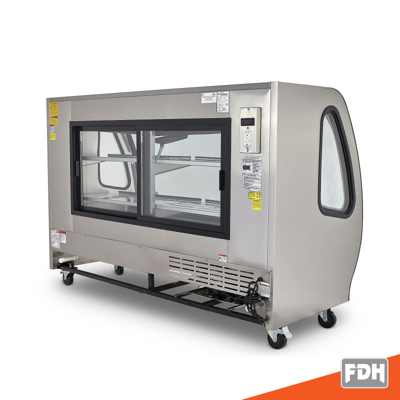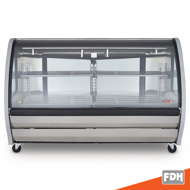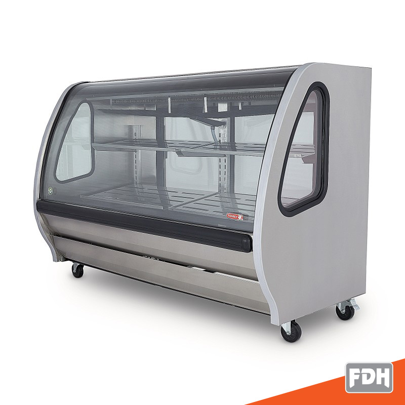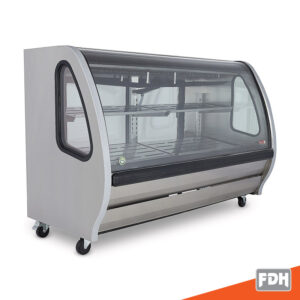 Vitrina TORREY de acero inoxidable de 1.91 m, 2 niveles de exhibición, control de temperatura digital y techo de acero inoxidable, ideal para utilizarla como mostrador dentro de tu establecimiento.